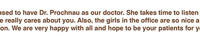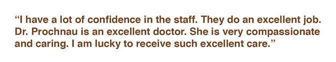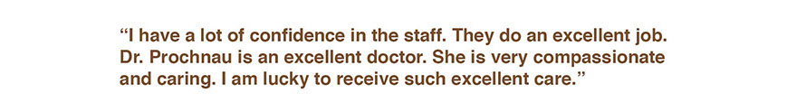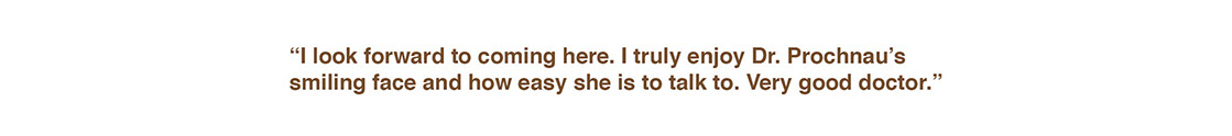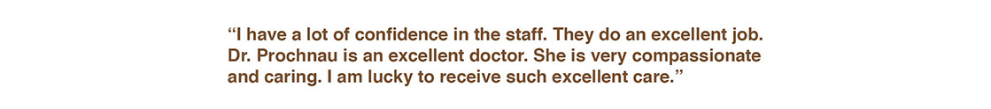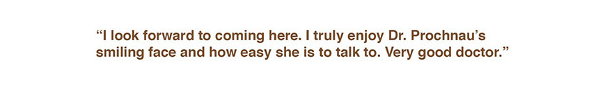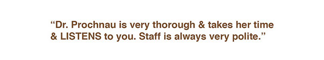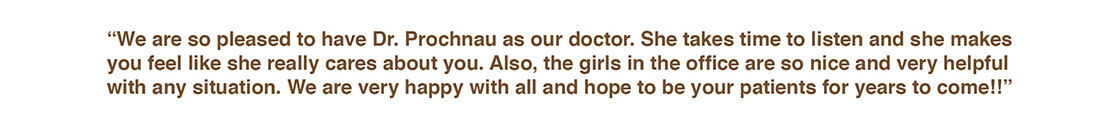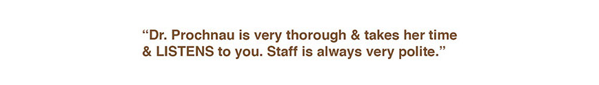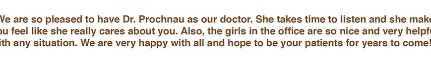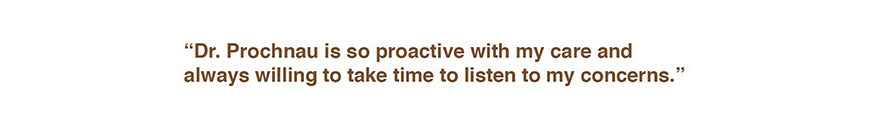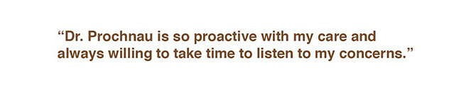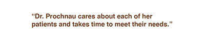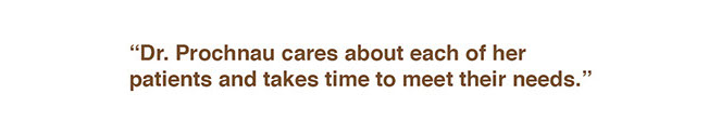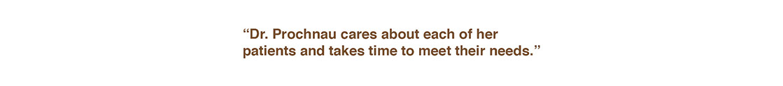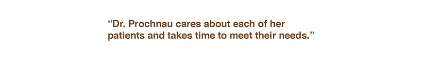 Dr. Prochnau graduated summa cum laude with a Bachelor of Arts degree in psychology from UNC-Charlotte in 1994 and then received her Doctor of Medicine degree from UNC School of Medicine in 1998. She completed her internal medicine residency at the University of Tennessee Knoxville Medical Center in 2001. She is board certified in Internal Medicine.